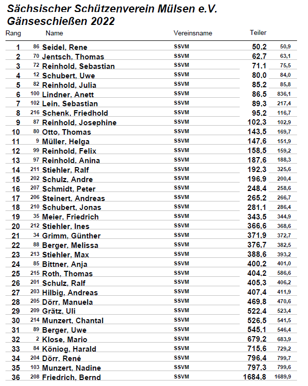 Gänseschießen - Sächs. Schützenverein Mülsen e.V.